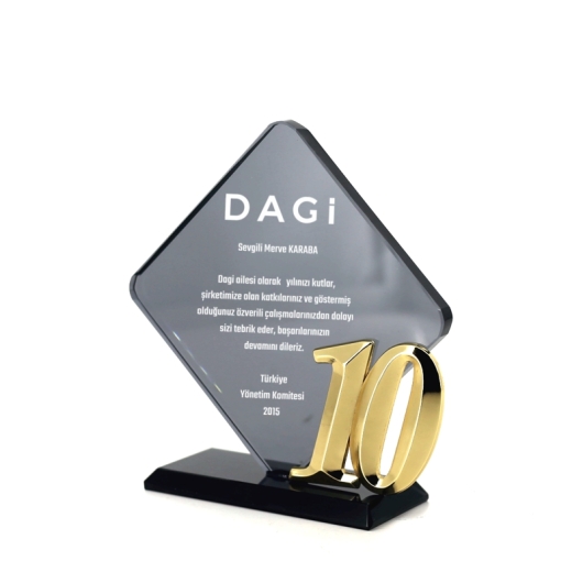 10. yıl Füme Kristal Plaket Kıdem Plaketi Örnekleri