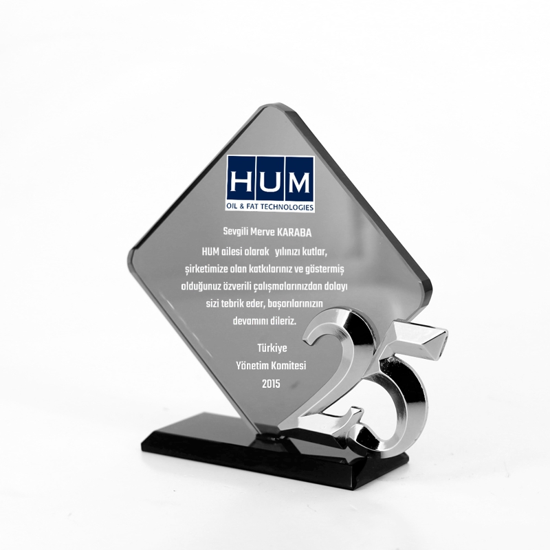 25. yıl Füme Kristal Plaket Kıdem Plaketi Örnekleri