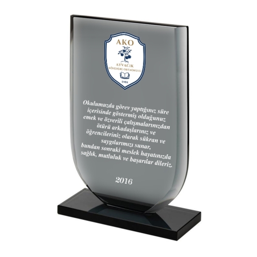 Oval Füme Kristal Plaket Çeşitleri ve Örnekleri 16cmx17cm boyutlarında uv baskılı Kristal Plaket Modeli