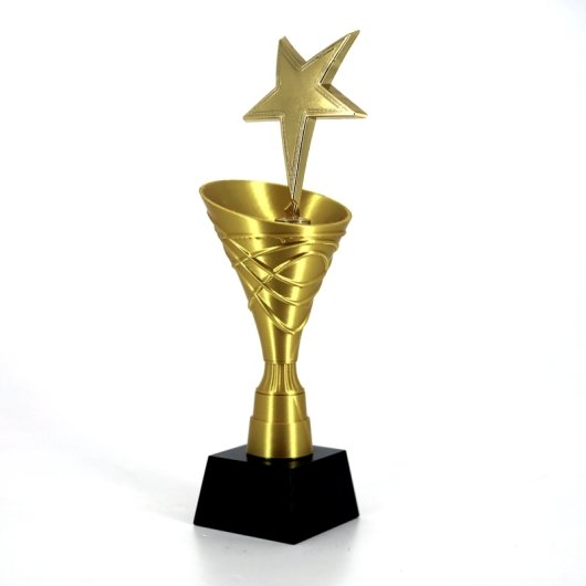 Yıldız Ödül Kupası Çeşitleri ve İmalatı Siyah Kristal Ayaklı Gövde Sert Plastik Yıldızın Malzemesi Metal Boyutları 30cm